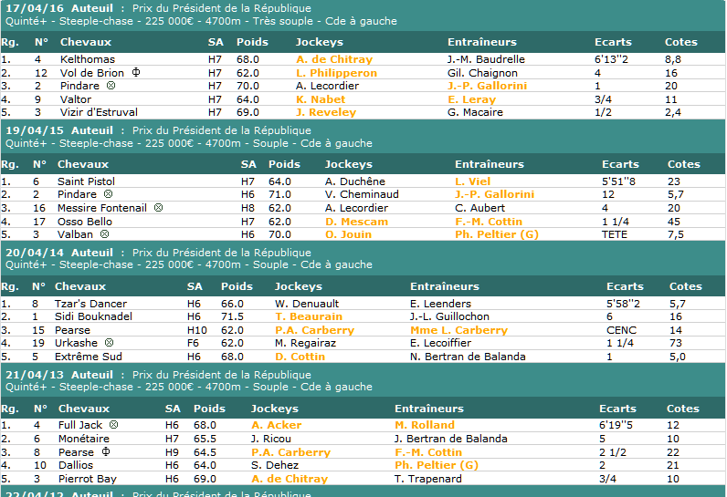Quintés ordre