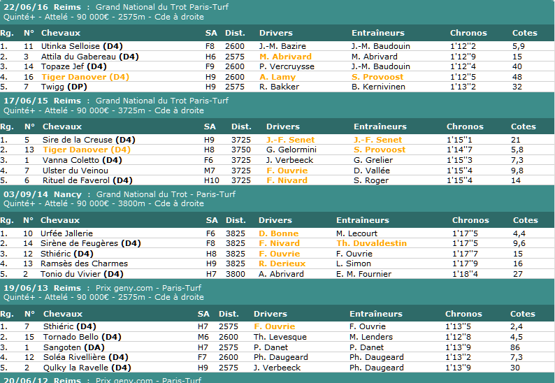 Quintés ordre