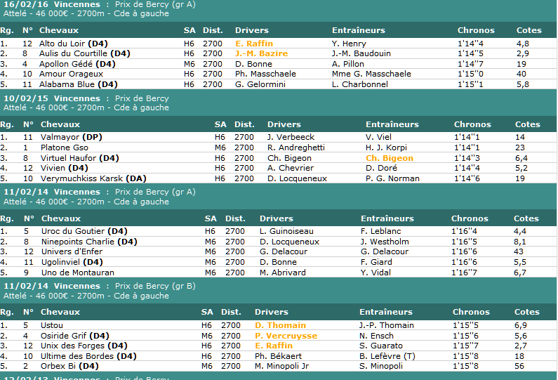Quintés ordre