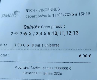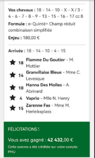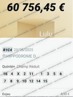 Quinté ordre 25% - Vincennes - 23 mai 2025 - Gain 60 756 euros - Ludovic J. (deuxième plus gros gain sur le site).