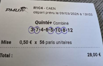 Quinté désordre (en valeur) - Auteuil - 23 novembre 2025 - Gain 2904 euros - Mickaël T. (trophée provisoire).