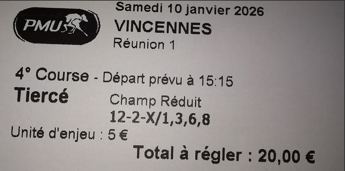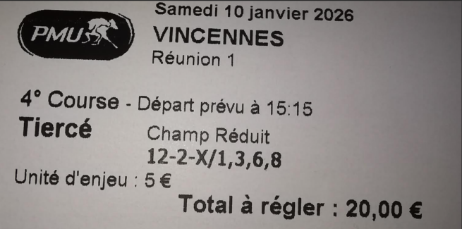 Tiercé ordre X 5 - Vincennes - 10 janvier 2025 - Gain 265,50 euros - Dimo (bases Hubble du Vivier et Isofou du Chêne).
