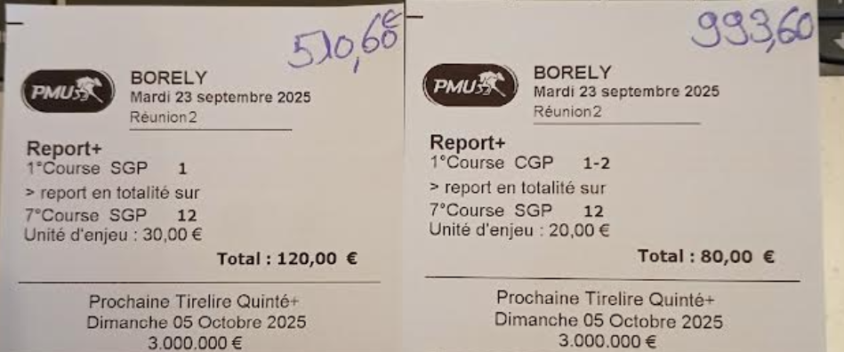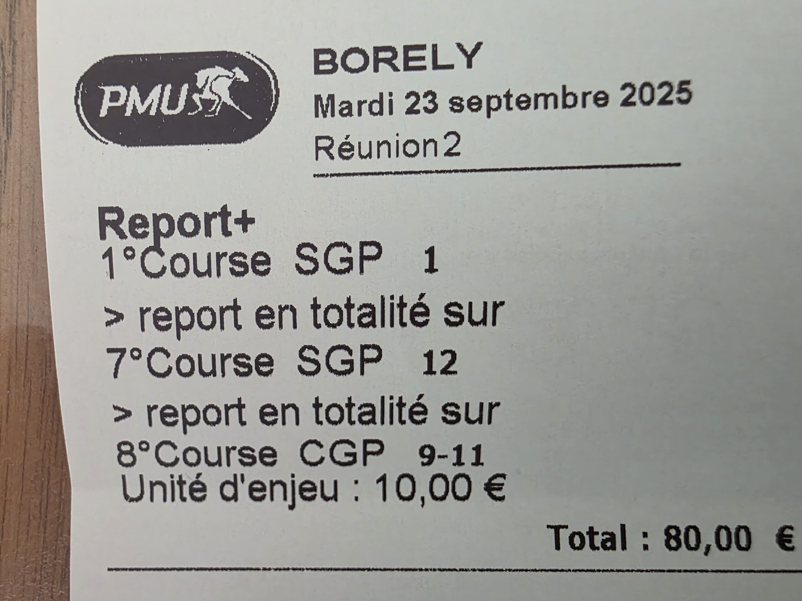 Reports - Marseille-Borély - 23 septembre 2025 - Gain 1503 euros - Michel U.