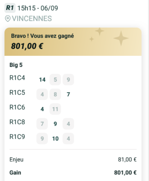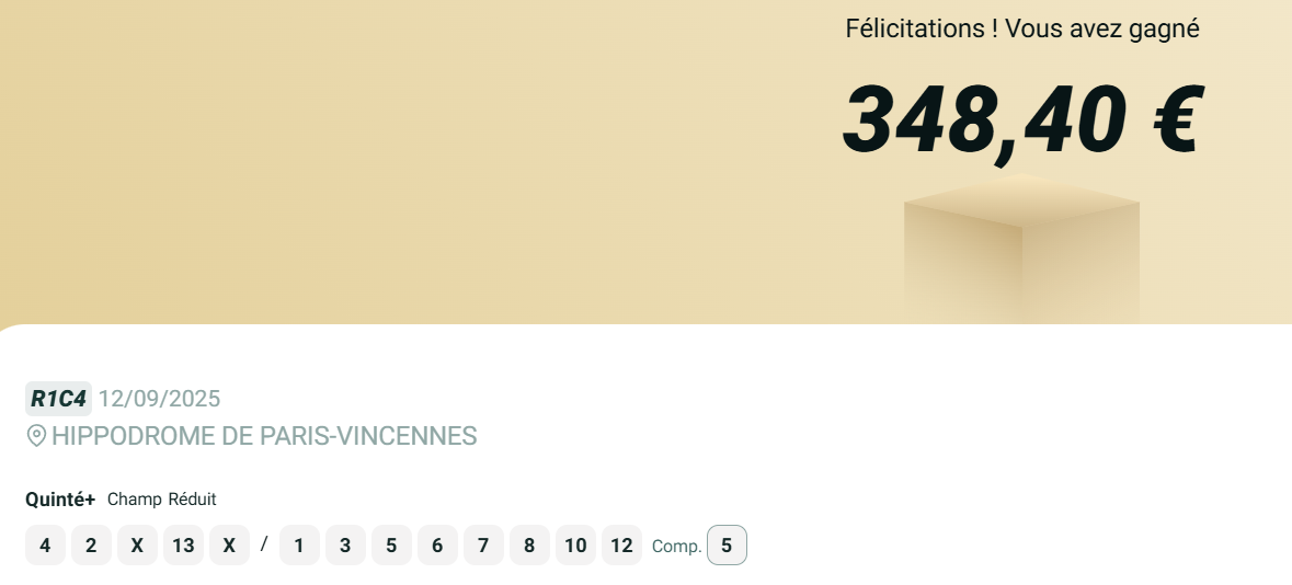 Big5 - Vincennes - 6 septembre 2025 - Gan 801 euros - Mickaël T. (inspiration personnelle, trophée provisoire).
