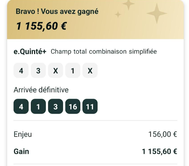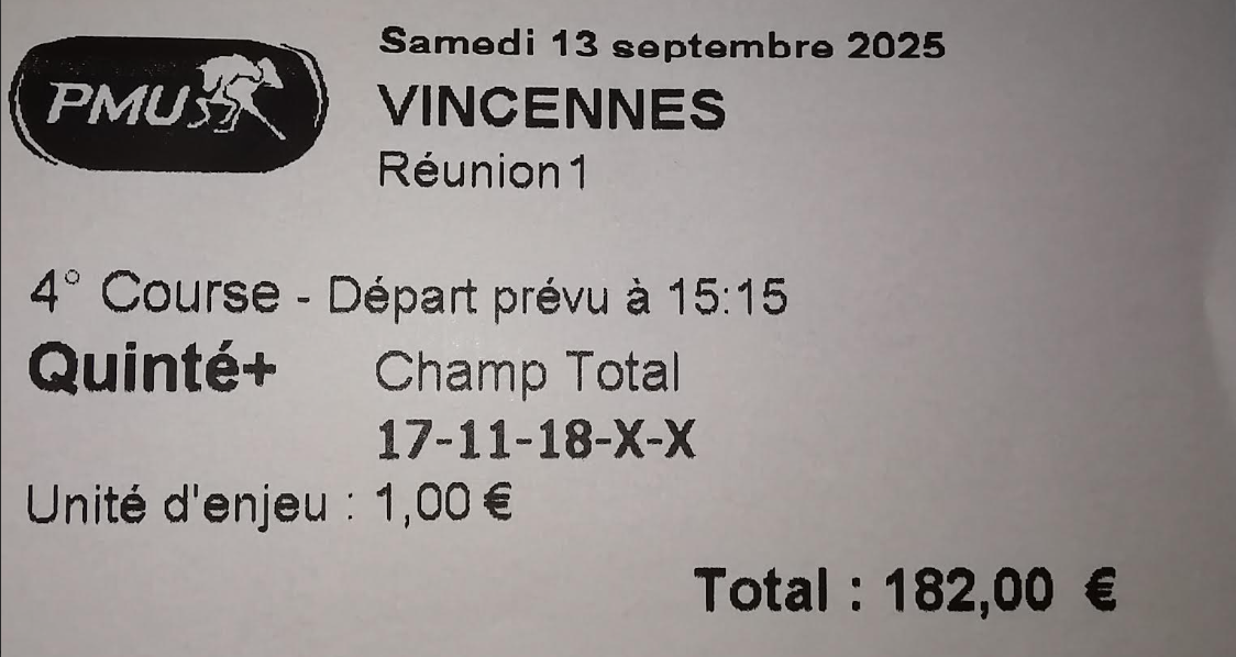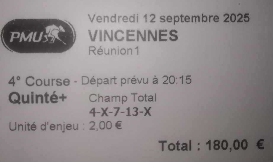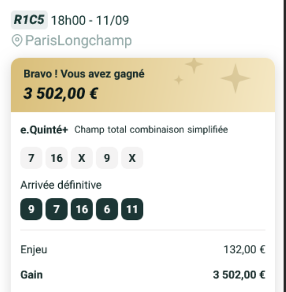 Quinté désordre (en valeur) - ParisLongchamp - 11 septembre 2025 - Gain 3502 euros - Mickaël T. (trophée provisoire).