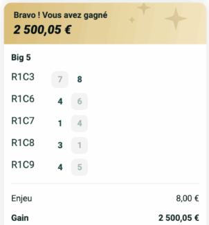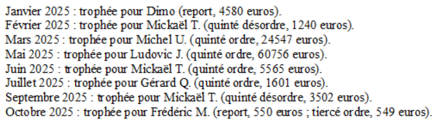 Big5 - Deauville - 2 novembre 2025 - Gain 2500 euros - Jean-Pierre P. (trophée provisoire).