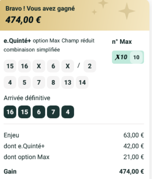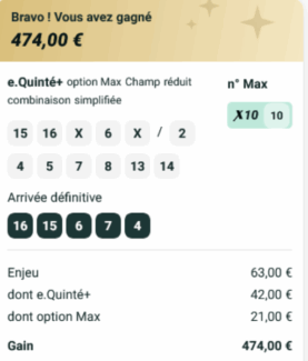 Quinté désordre + tous les bonus X 10 (grâce au n° Max 10) - Laval - 1er novembre 2025 - Gain 474 euros - Mickaël T. (qui n'a pas hésité à enlever ER, qui drivait la favorite Jalendra de Malac).