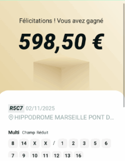 M4 - Marseille-Vivaux - 2 novembre 2025 - Gain 598 euros - Lior E. (note Minella + Morane, trophée provisoire).