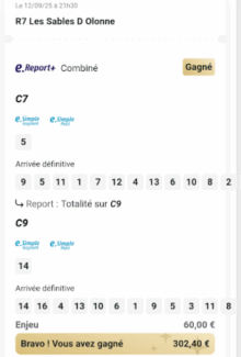 Report - Les Sables-d'Olonne - 12 septembre 2025 - Gain 302 euros - Frédéric M.