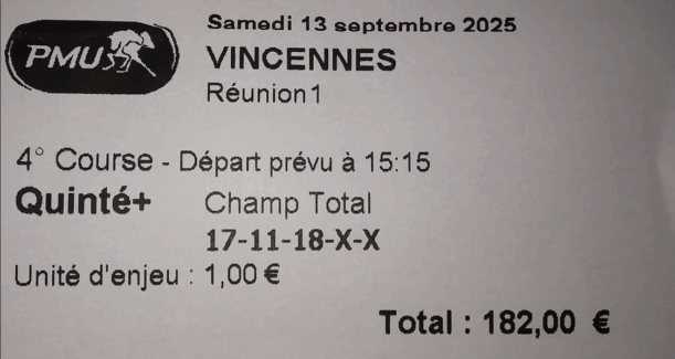 Quinté désordre (valeur) - Vincennes - 13 septembre 2025 - Gain 1480 euros - Dimo.