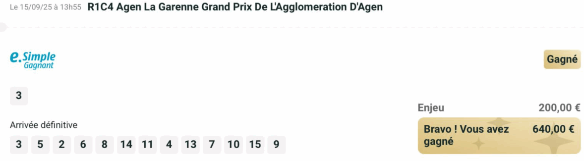 Simple gagnant - Agen - 15 septembre 2025 - Gain 640 euros - Pierre H.