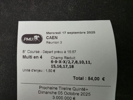 M4 flexi 50% - Caen - 17 septembre 2025 - Gain 409 euros - Frédéric M. (jeu conseillé).