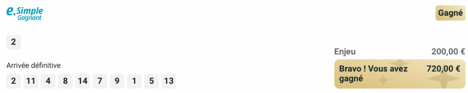 Simple gagnant - Lyon-Parilly - 17 septembre 2025 - Gain 720 euros - Pierre H.