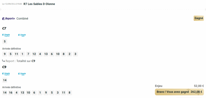 Report - Les Sables-d'Olonne - 12 septembre 2025 - Gain 262 euros - Frédéric M.
