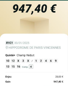 Report - Vincennes - 4 février 2025 - Gain 637 euros - Angel G.