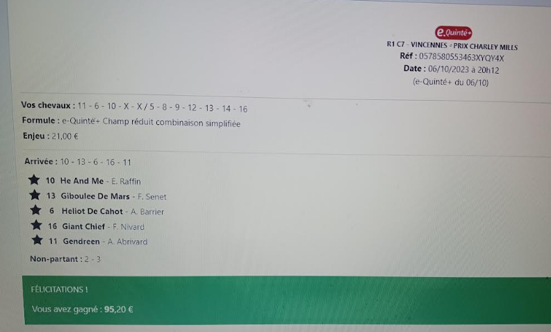 Quintés ordre